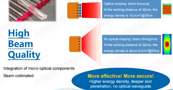 Kualiti Rasuk Unggul: Dengan mengecilkan perbezaan setiap diod laser, pancaran menjadi lebih tepat, membolehkan rawatan yang lebih pantas dan keberkesanan yang dipertingkatkan.