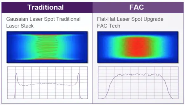 Laser semikonduktor menggunakan teknologi FAC: mengurangkan sudut perbezaan keluaran laser secara berkesan; menjadikan pancaran laser yang dipancarkan lebih seragam dan tenaganya lebih pekat; dan mengurangkan kerosakan pada laser yang disebabkan oleh maklum balas optik.