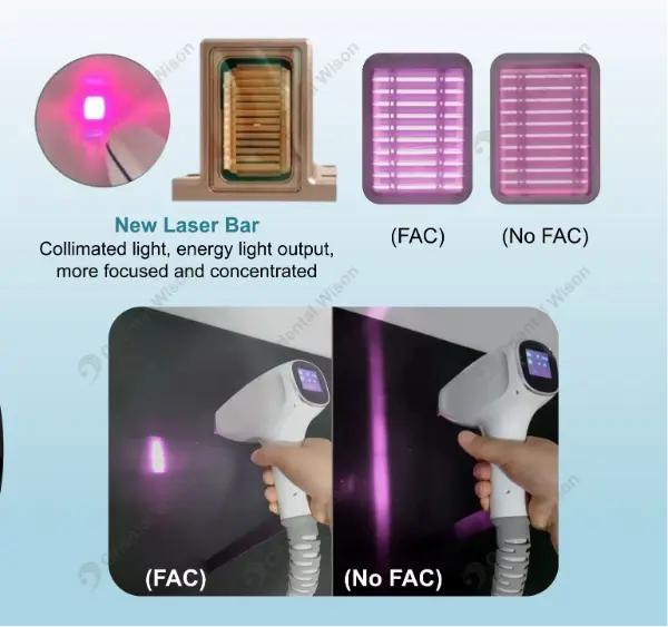 Ketumpatan Tenaga Lebih Tinggi: FAC memfokuskan pancaran, memastikan hampir 99% kuasa mencapai folikel rambut dan bukannya berselerak.