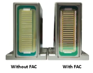 Laser diod secara amnya tidak cekap kerana perbezaan yang tinggi dan tidak simetri, terutamanya dalam paksi pantas. Teknologi FAC menyelesaikan masalah ini dengan meletakkan kanta silinder apertur berangka tinggi (NA≈0.8) terus di hadapan pemancar laser, menghasilkan pancaran berintensiti tinggi yang dikolimasikan